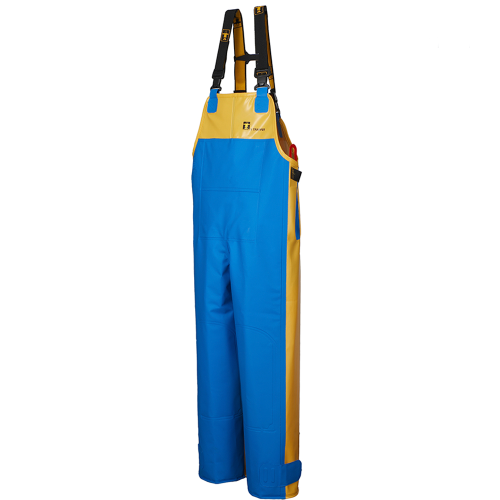 Pantalón Guy Cotten Trapper de peto especial para pesca industrial o actividades relacionadas con el mar. Fabricado en material impermeable Cap-Coz y tejido Nylpeche que brindan resistencia frente al desgaste del uso prolongado en condiciones extremas.